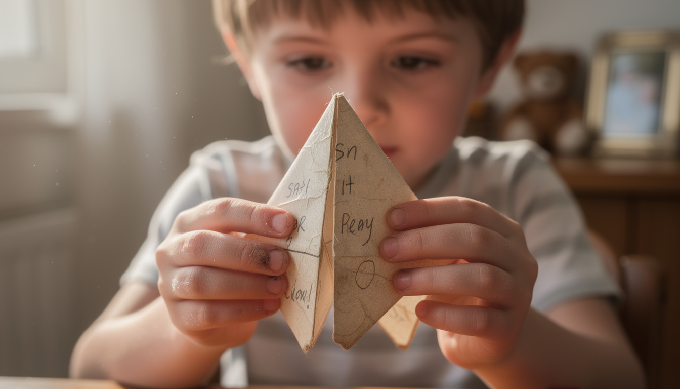 Cette technique de pliage, simple à réaliser, permet d’obtenir une cocotte qui tient bien pendant le jeu. Une fois la cocotte terminée, les enfants peuvent choisir des chiffres et des couleurs pour découvrir les messages ou défis intégrés.